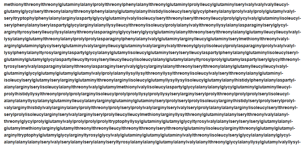 1. Methionylthreonylthreonyl… isoleucine – 189.819 letters (Engels/Scheikunde)