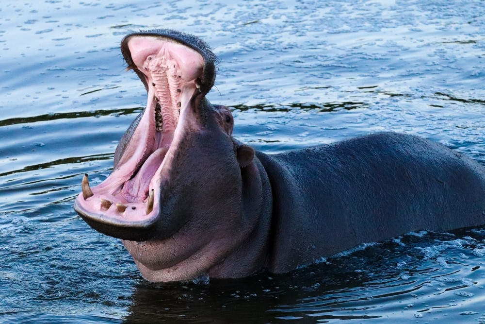 Nijlpaarden kunnen hun bek 180 graden openen en bijten met 1.800 PSI – genoeg om een watermeloen te verpulveren als een druif. Hun hoektanden worden tot 50 centimeter lang.